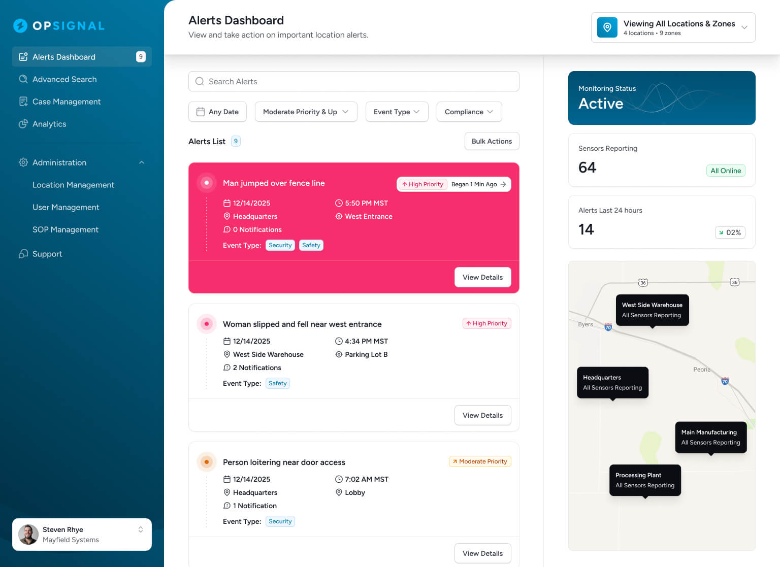We don’t sell generic security. From NERC-regulated substations to Foreign Trade Zones, OpSignal applies industry-specific logic to ensure your facility meets its unique regulatory mandates.