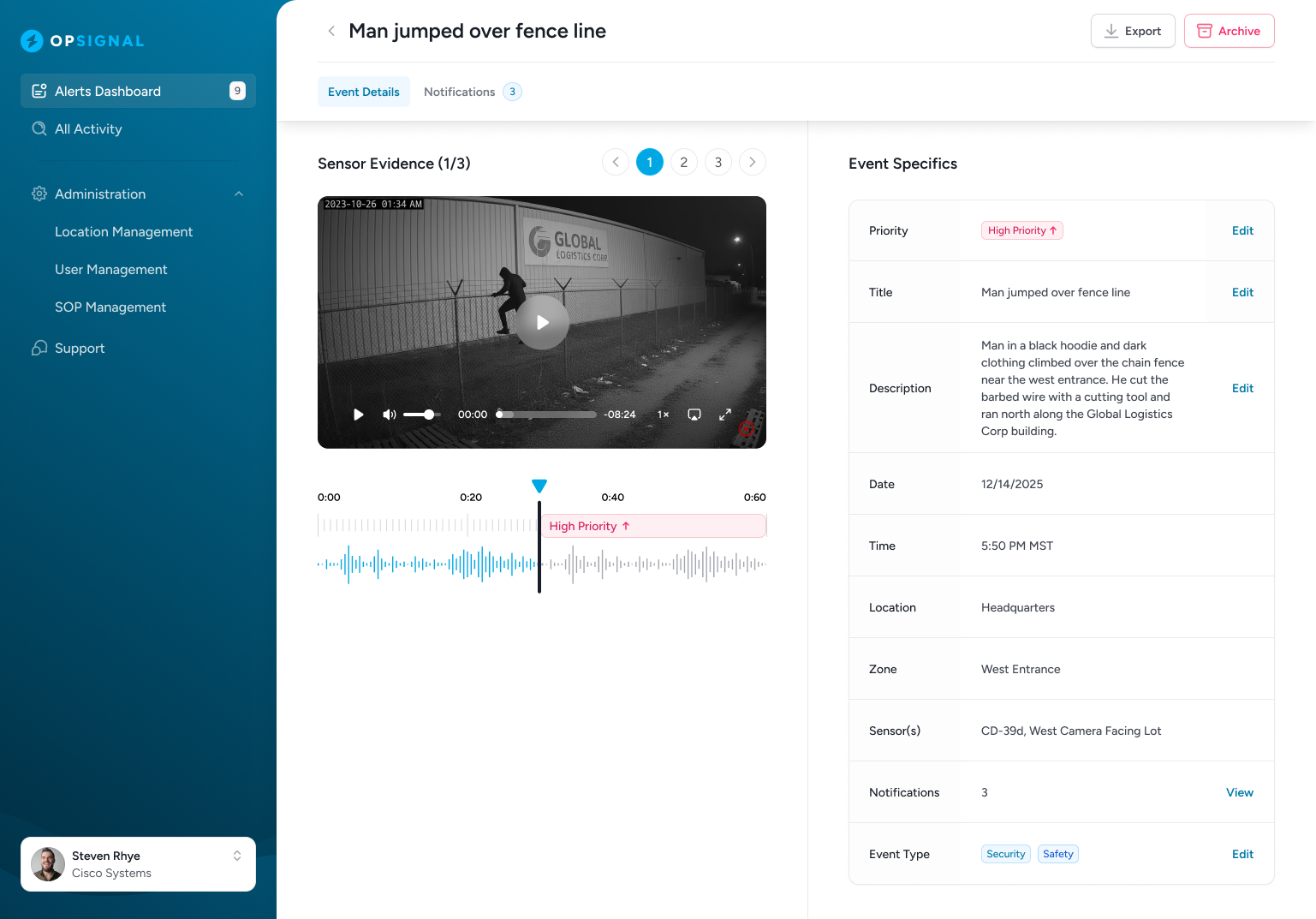 While traditional systems only alert you to “known” threats like intruders, OpSignal’s Contextual Synthesis engine identifies risks by establishing a baseline for your facility’s “Normal State.” By analyzing the narrative of a scene, the system can detect subtle deviations from standard patterns. This allows your team to identify emerging safety risks or operational failures before they escalate into incidents, all without requiring manual rule-setting on your part.